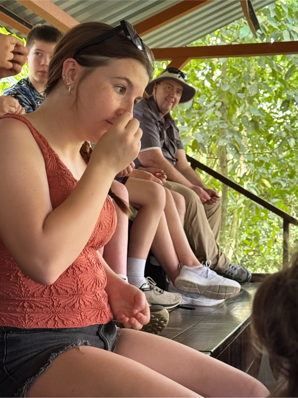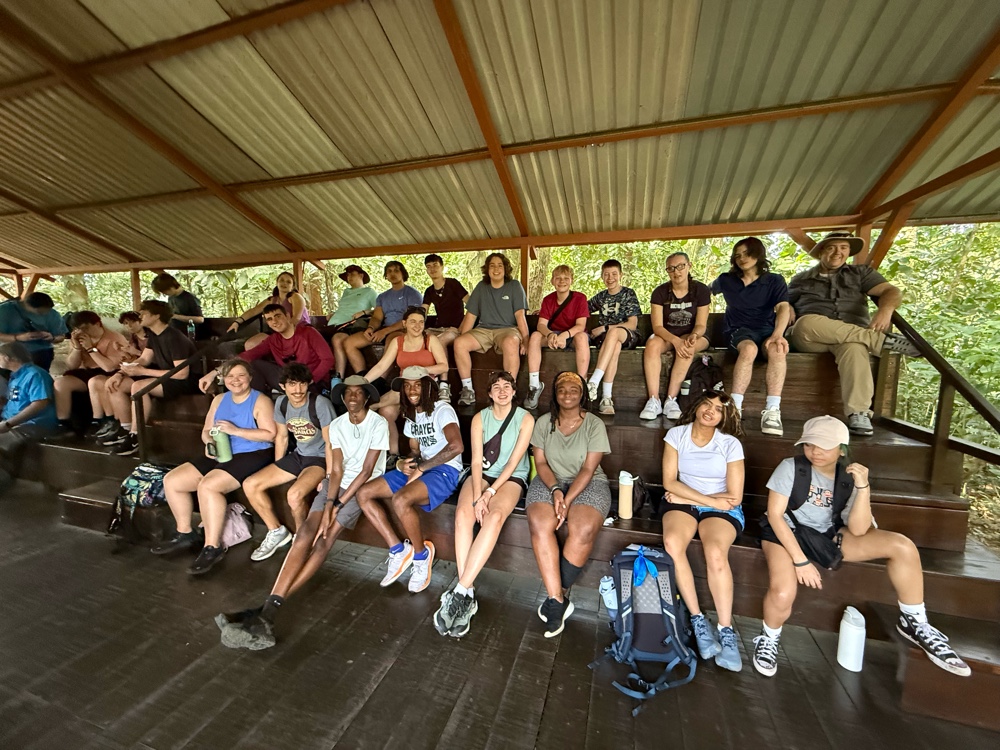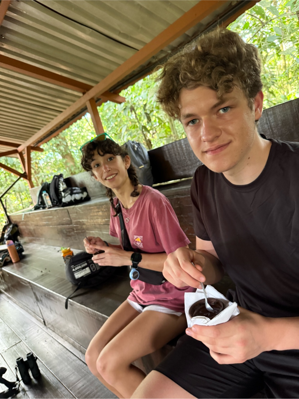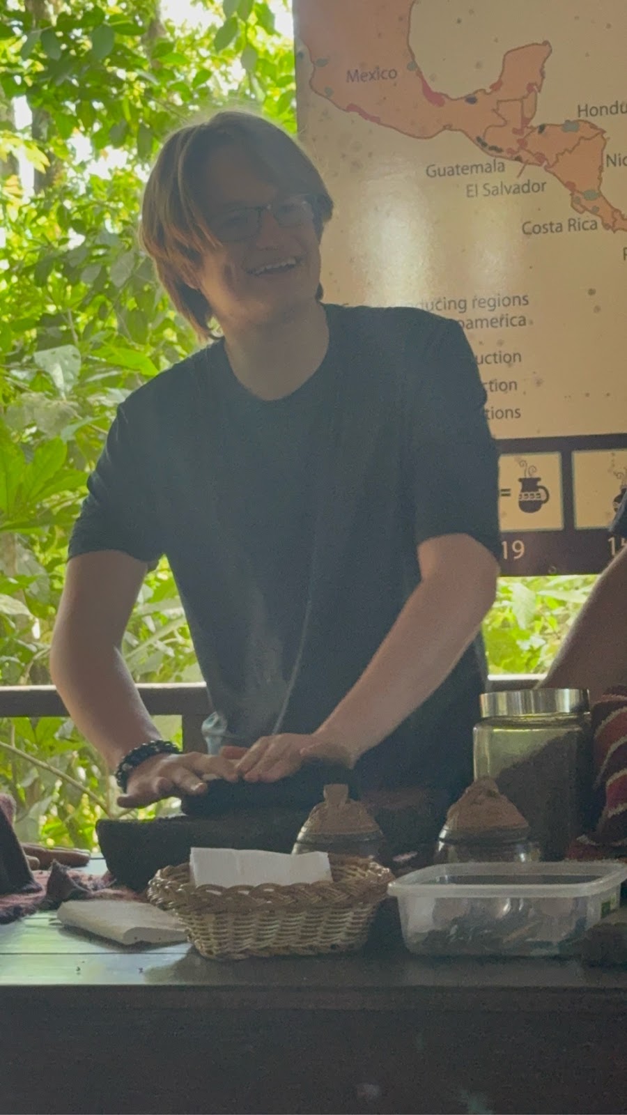 While grinding, our guide added cinnamon and sugar. Both melted into the paste and changed the smell immediately. Several students got to try their hand at making the paste and further grinding the nibs. The kids had to “dance” while doing it because that’s how it was traditionally done, so several of our students took that job very seriously while others provided the music.