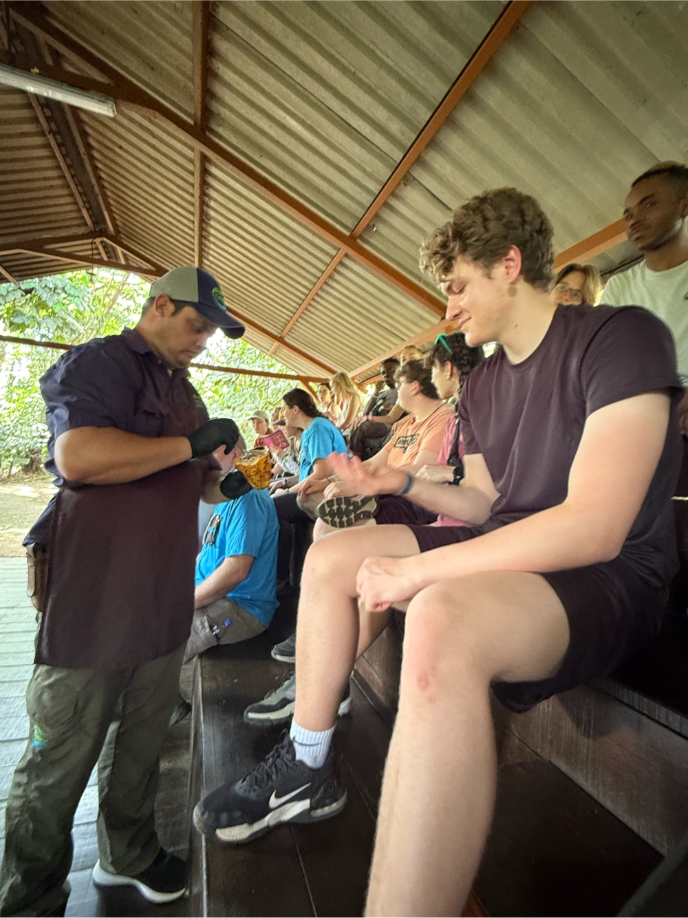To demonstrate how we open the pod, he offered two methods and of course the group picked the “monkey method,” which involves a dramatic slam and sound effects.