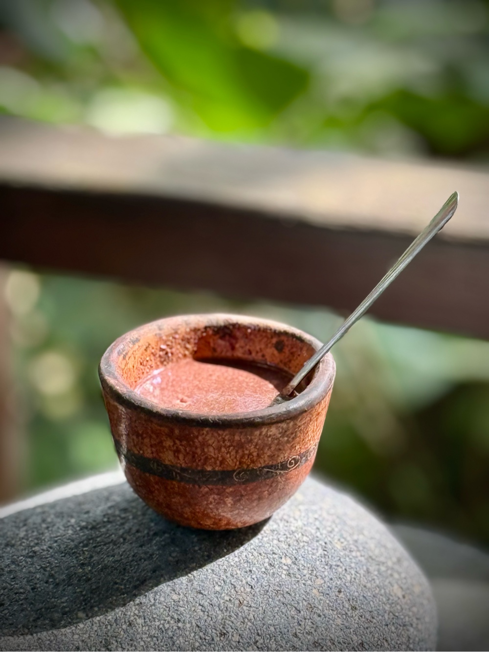 It’s earthy and bitter, nothing like modern hot chocolate. As options we added vanilla, chili, nutmeg, pepper, cornstarch, sugar, or milk to customize our own versions.