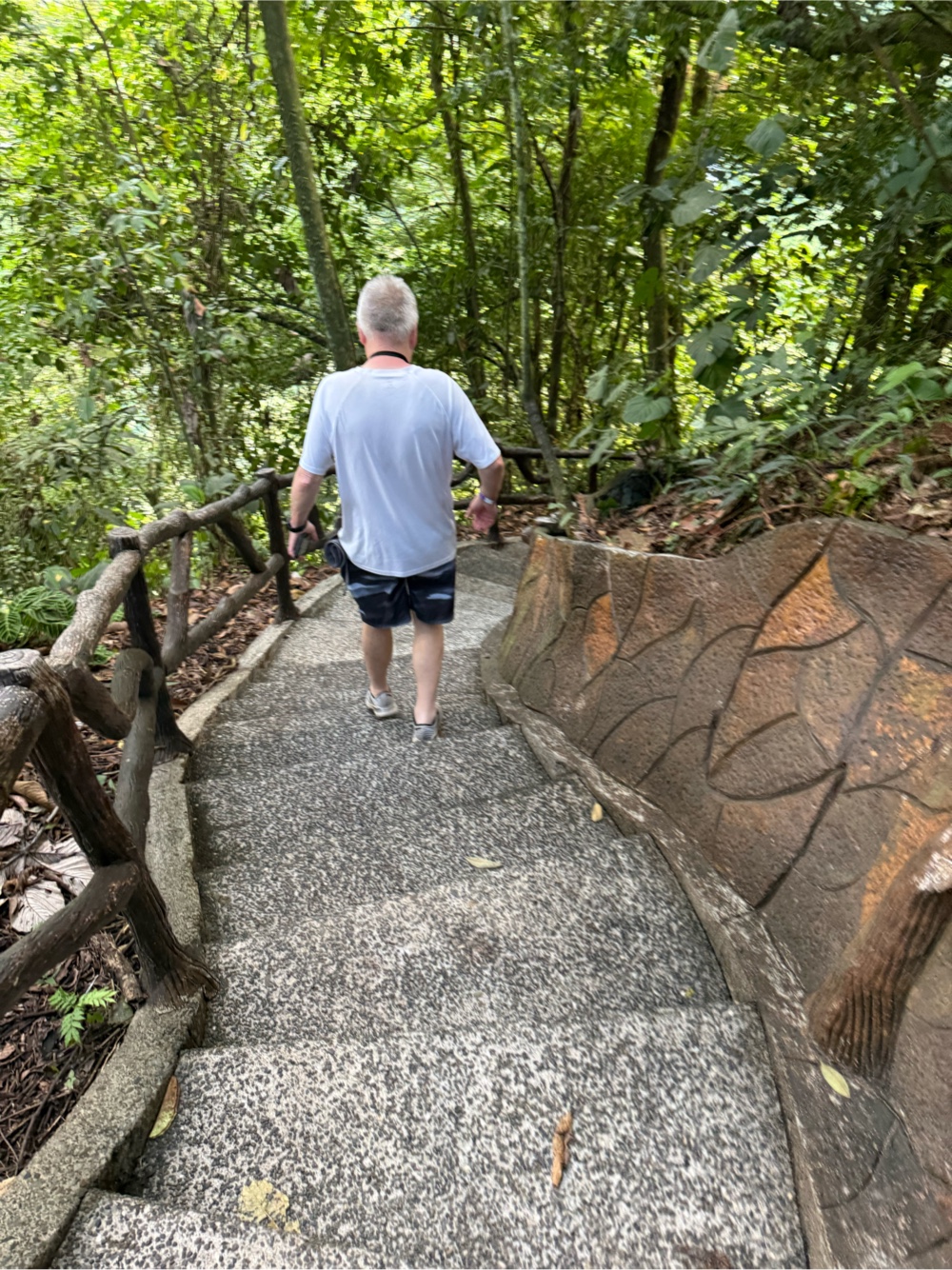 We actually started at the top of the cliff and had to walk down more than 500 steps to get to the base. The steps are concrete and there are handrails, benches, and water stations along the way so its easy going if a little foreshadowing of the needs for rest on the way back up! The climb down was fine, just a lot of steps. There are even cute motivational signs along the way to help you!