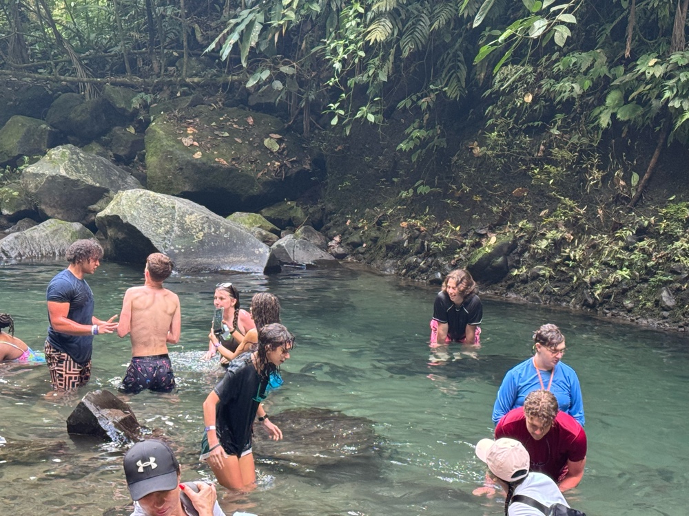The bottom feels cooler and the air is full of mist. Some of the kids went down to the lower pool below the falls area and waded in the shallow water. Meanwhile, some of our cross country runners and athletes decided to run the steps again and went up 500, down 500, and back up 500 again. Coach Clark should be happy…