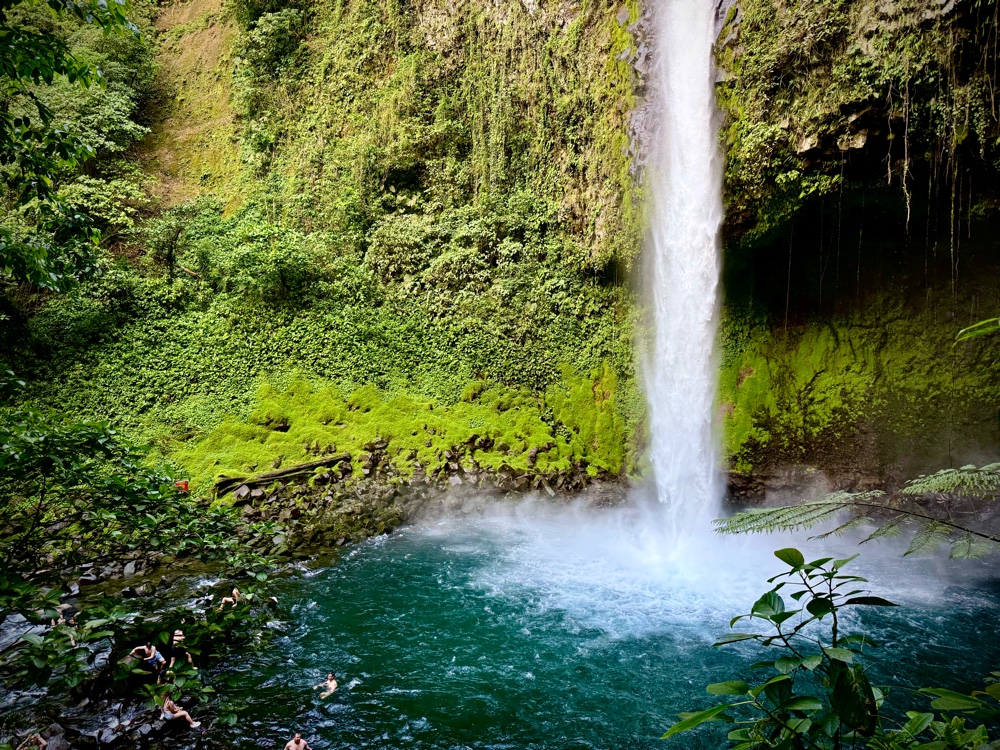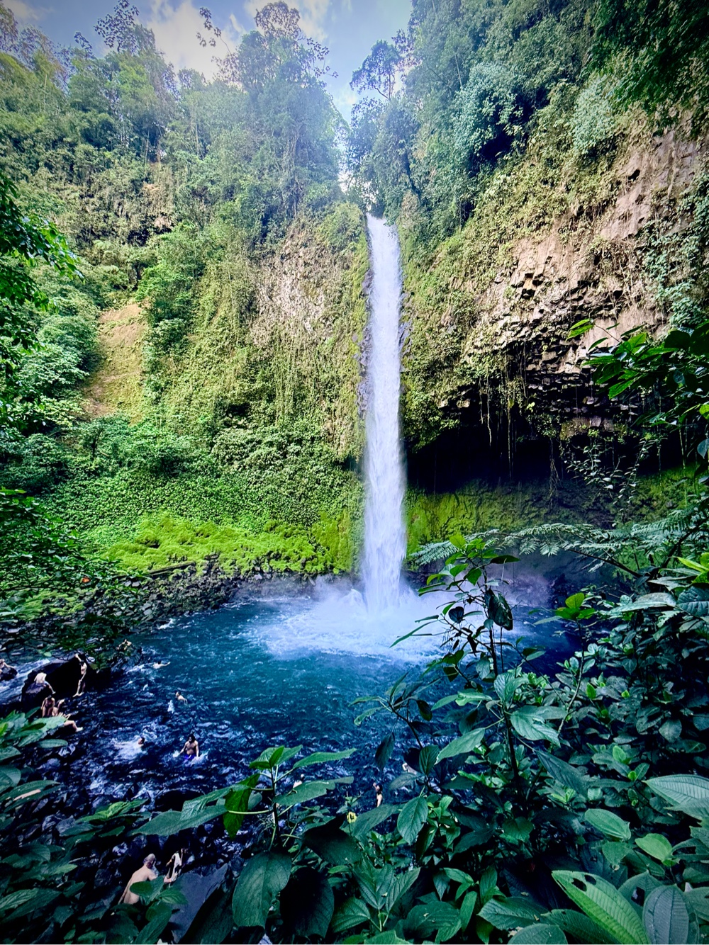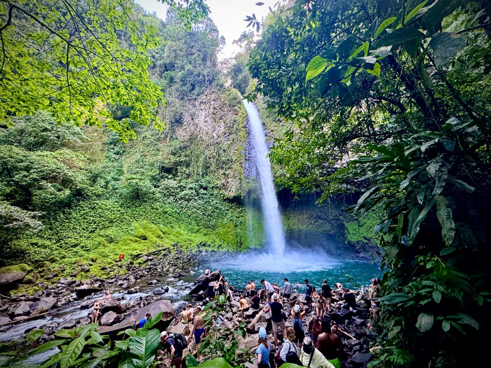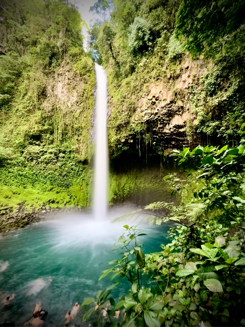 We stopped in La Fortuna to see the amazing waterfall which is one of the most well known Landmarks for Costa Rica. La Fortuna Waterfall is fed by the Fortuna River and falls more than 200 feet. The rocks and cliffs around it come from an older volcano nearby, which explains why everything feels steep and sharp edged. You can tell the area has been protected for a long time because the forest closes in tight around the pool.