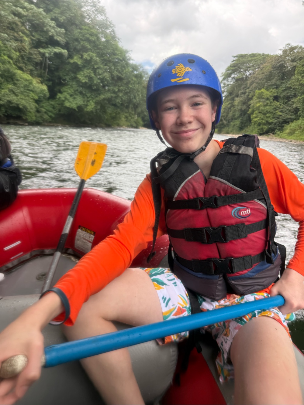 At one point we stopped and kids could jump off a “cliff” along the river. It was a pretty rocky climb to get there from the shore. Then at top, it was a little intimidating to try and force yourself to jump off the cliff. But we had may brave souls who did (including me!) and the were pulled back into boats by their crew. Definitely a one of a kind adventure!