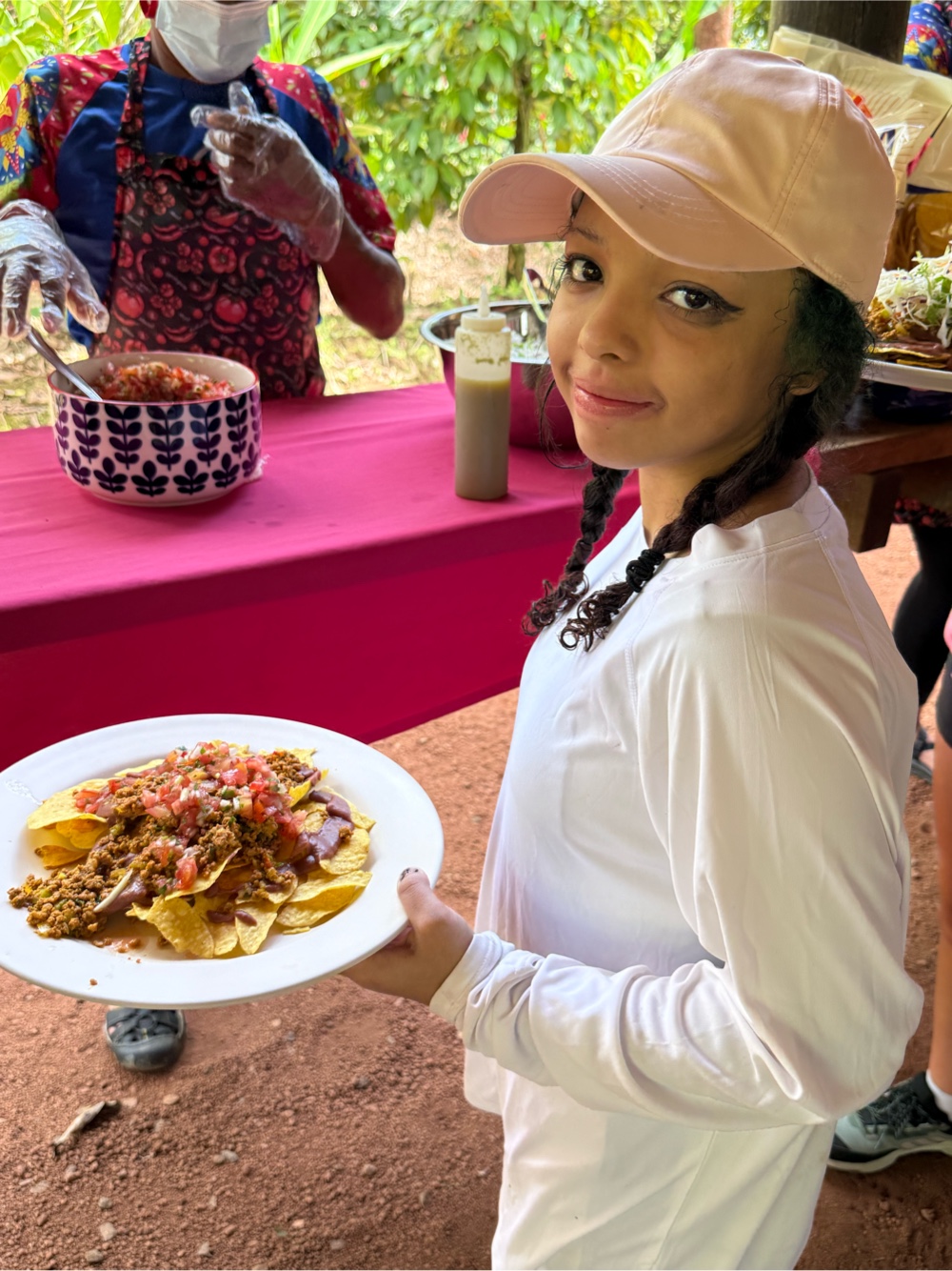 Then it was time for a delicious lunch. Our guides served us Costa Rican nachos - with fried beans, meat, cheese, sour cream, salsa and lettuce. For dessert there were coconut cookies which we have seen in several places. Very filling!