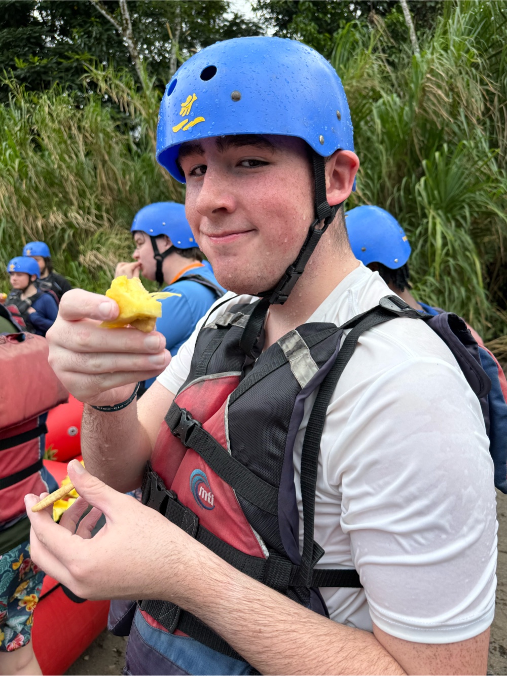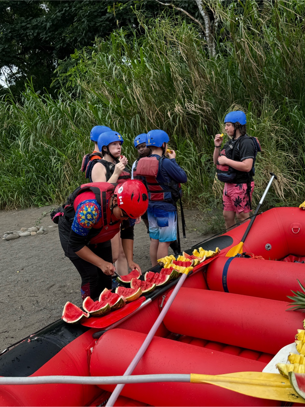 About 2/3 of the way down the river we stopped for everyone to have a snack of fresh pineapple, watermelon, and some cookies.