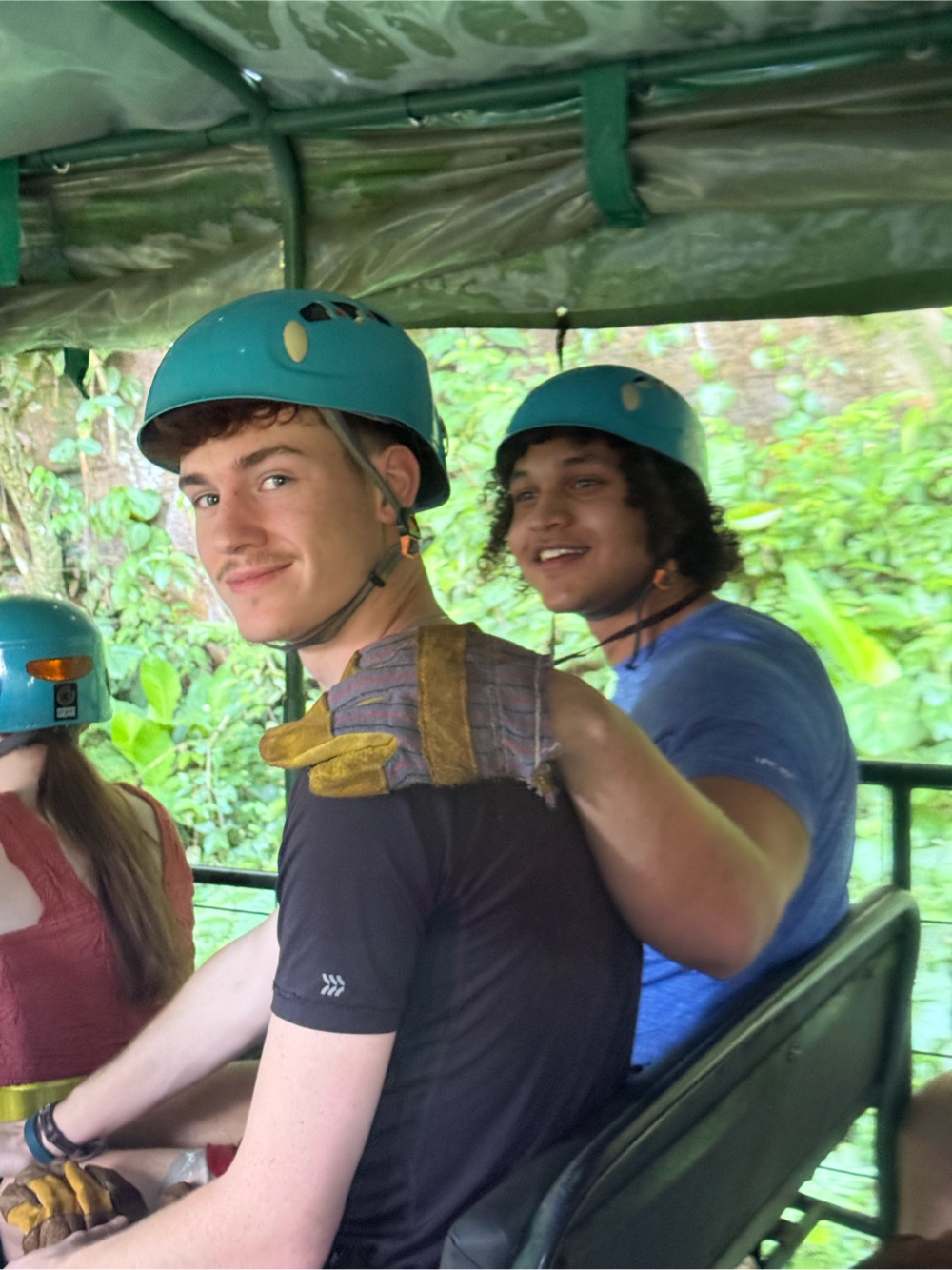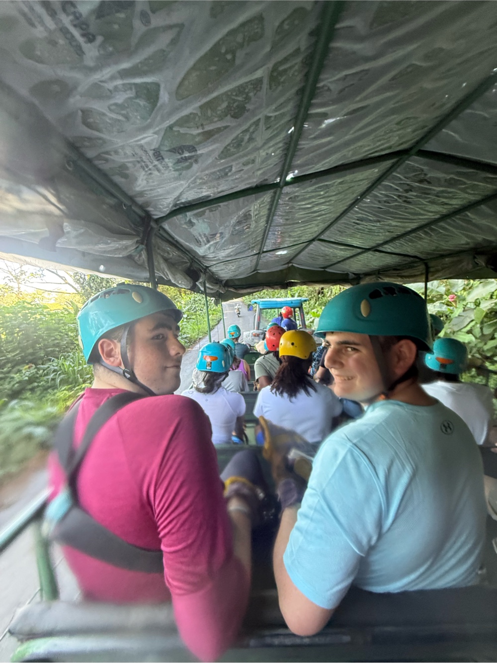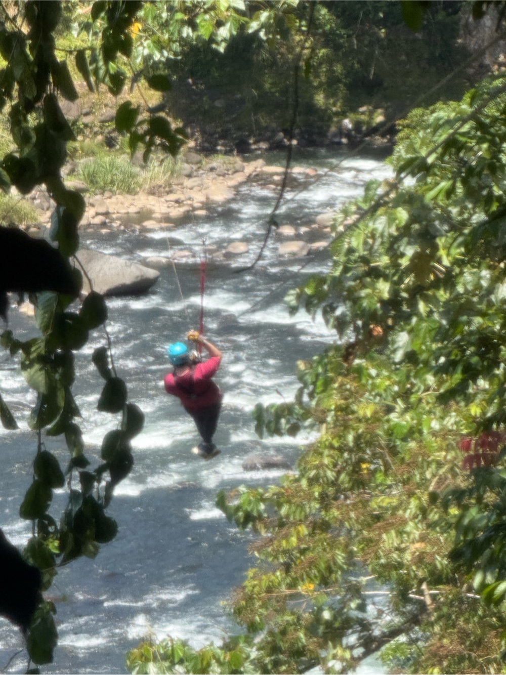 Then after two long steep hikes up we loaded back into the tractor to head to our final spot. This one was a long line over the river below and back to home base.